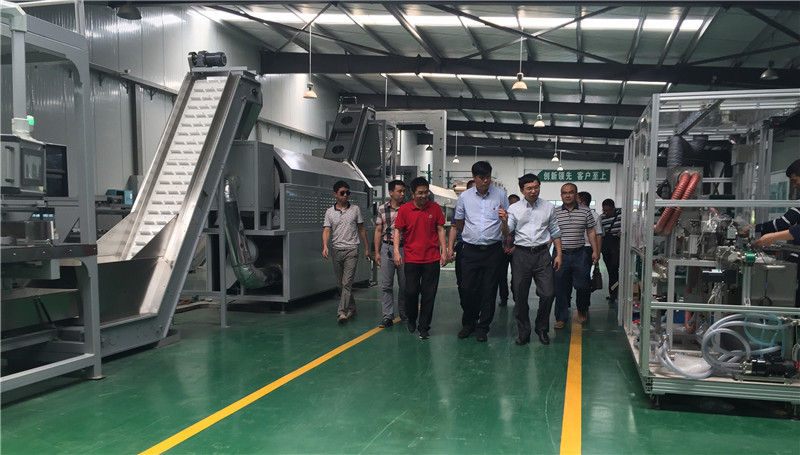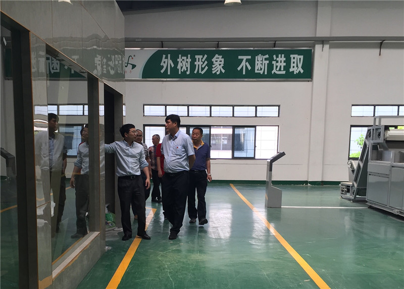 2017年5月17日上午臨武縣縣委書記李浩、政協(xié)副主席袁章民、縣經(jīng)科商局局長文道斌等人蒞臨湘豐裝備考察參觀。臨武縣考察團(tuán)一行參觀了我司智能控制一體化的多功能茶葉生產(chǎn)線以及公司新研制的電池清洗機(jī)。