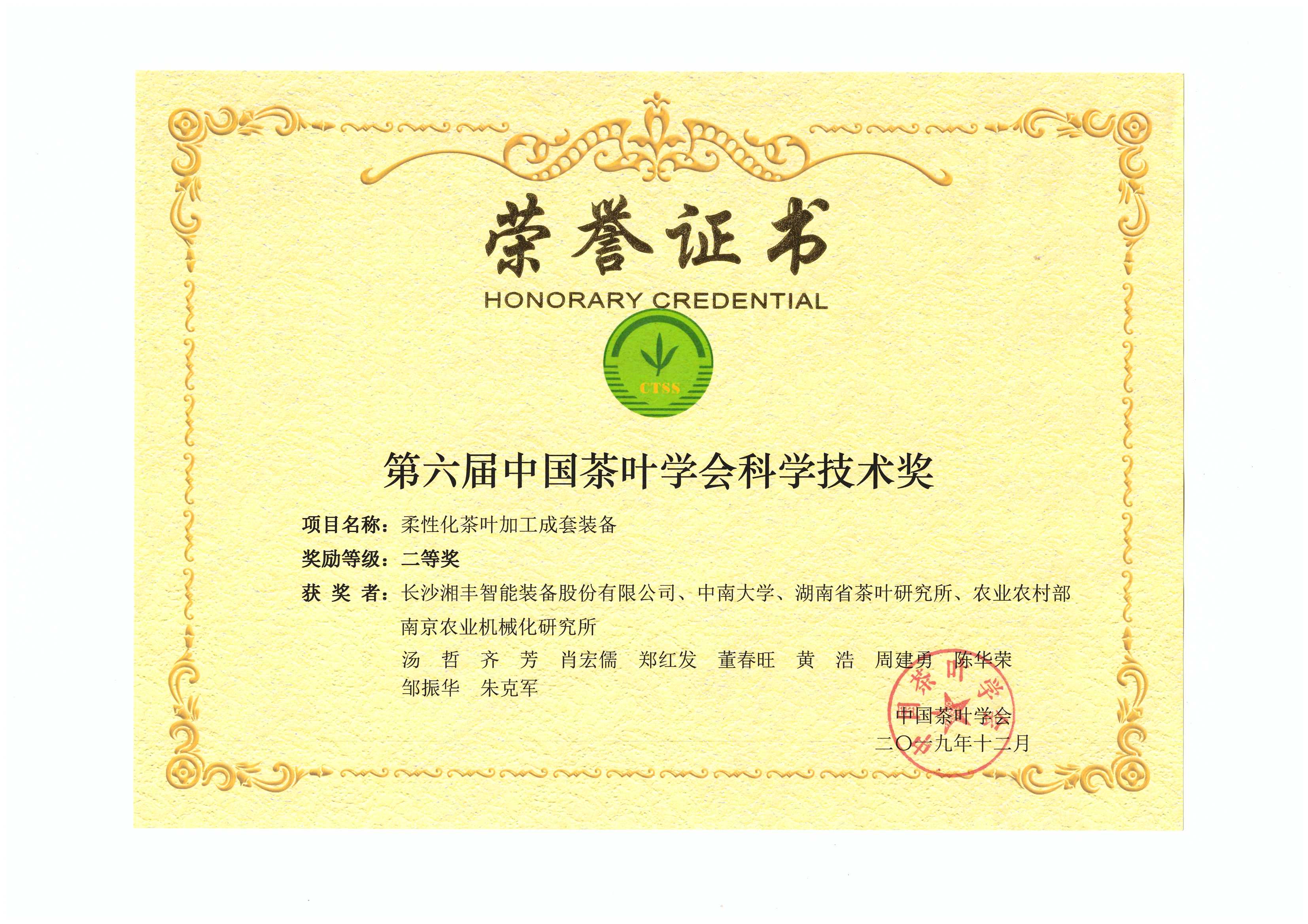 我司“柔性化茶葉加工成套裝備”榮獲“第六屆中國茶葉學(xué)會科學(xué)技術(shù)獎”