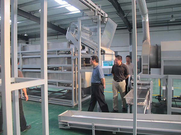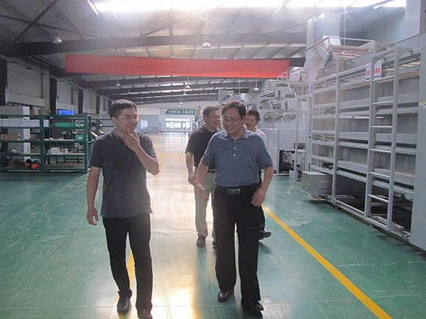 楊所長一行參觀了湘豐智能裝備清潔化、標(biāo)準(zhǔn)化、自動化、智能化一體的多功能茶葉生產(chǎn)線,對我司的鮮葉處理、揉捻機(jī)、烘干機(jī)、炒干機(jī)實驗平臺進(jìn)行了現(xiàn)場考察,對茶葉機(jī)械生產(chǎn)線新產(chǎn)品的研發(fā)進(jìn)行了指導(dǎo)。